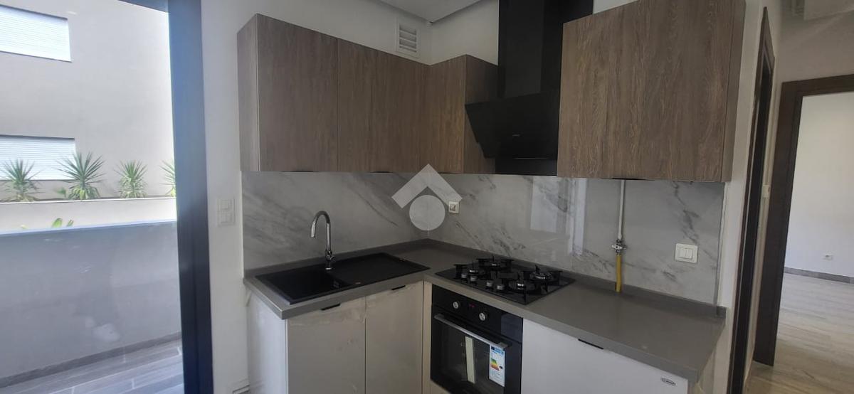 Cet appartement occupe le premier étage d'une résidence munie d'un ascenseur à Chotrana . Il se distingue par son emplacement. Il est proche de tout commerce et commodités. Le hall d'entrée donne sur la pièce de réception. Cette dernière offre un espace de vie convivial lumineuse grâce à ses ouvertures sur un balcon. Dans la continuité, une salle de douche a été pensée. La cuisine agencée est équipée par une plaque, une hotte aspirante et un four. La partie nuit loge une chambre à coucher avec son propre dressing. L'appartement est équipé de chauffage central et de la climatisation en Split système. Une place de parking au sous-sol est disponible.