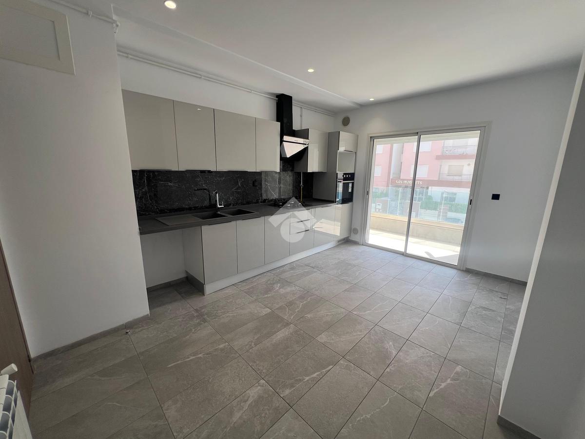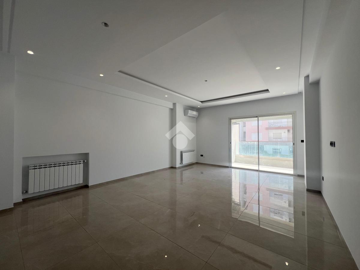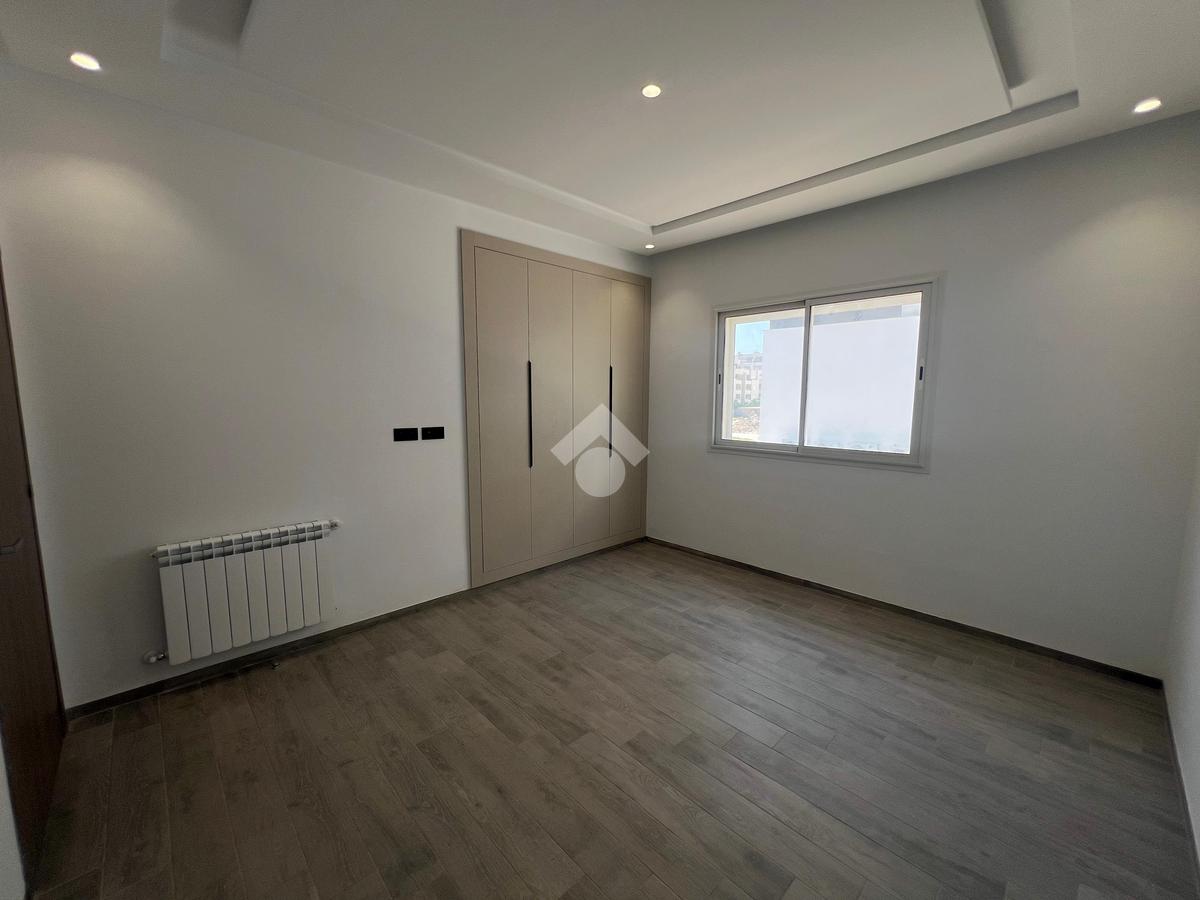Cet appartement direct promoteur est situé dans un quartier résidentiel, calme et bénéficiant d’un bon voisinage, dans la zone de La Soukra. Il fait partie d’une résidence sécurisée et bien gardée. L’entrée s’ouvre sur une pièce de vie conviviale, baignée de lumière naturelle grâce à ses ouvertures donnant sur un balcon. La cuisine, entièrement agencée, est équipée d’une plaque de cuisson, d’une hotte aspirante, d’un four électrique et complétée par un séchoir. Un hall avec dressing mène à une salle d’eau destinée aux invités. Dans la continuité, la partie nuit comprend deux chambres à coucher, chacune équipée d’un dressing. Elles se partagent une salle de bain commune. L’appartement est doté du chauffage central et d’un système de climatisation Split. Une place de parking au sous-sol est également disponible.