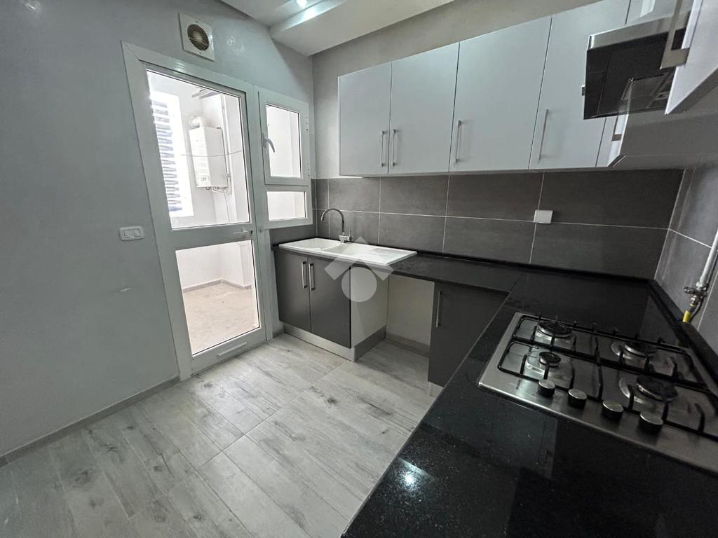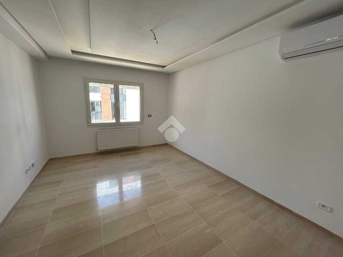 Cet appartement est situé dans un quartier résidentiel calme et doté d’un bon voisinage dans la zone de La Soukra. L'entrée donne sur une pièce de vie conviviale. La cuisine agencée est équipée par une plaque de cuisson, une hotte aspirante et un four électrique et complétée par un séchoir. La partie nuit loge une chambre à coucher, équipée par un dressing. Une salle de bain est disponible. L’appartement est équipé par une climatisation système Split, et un chauffage central. Une place de parking au sous-sol est réservée aux futurs habitants.