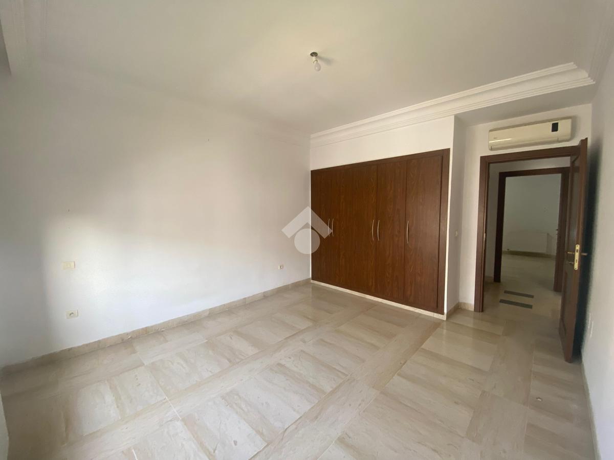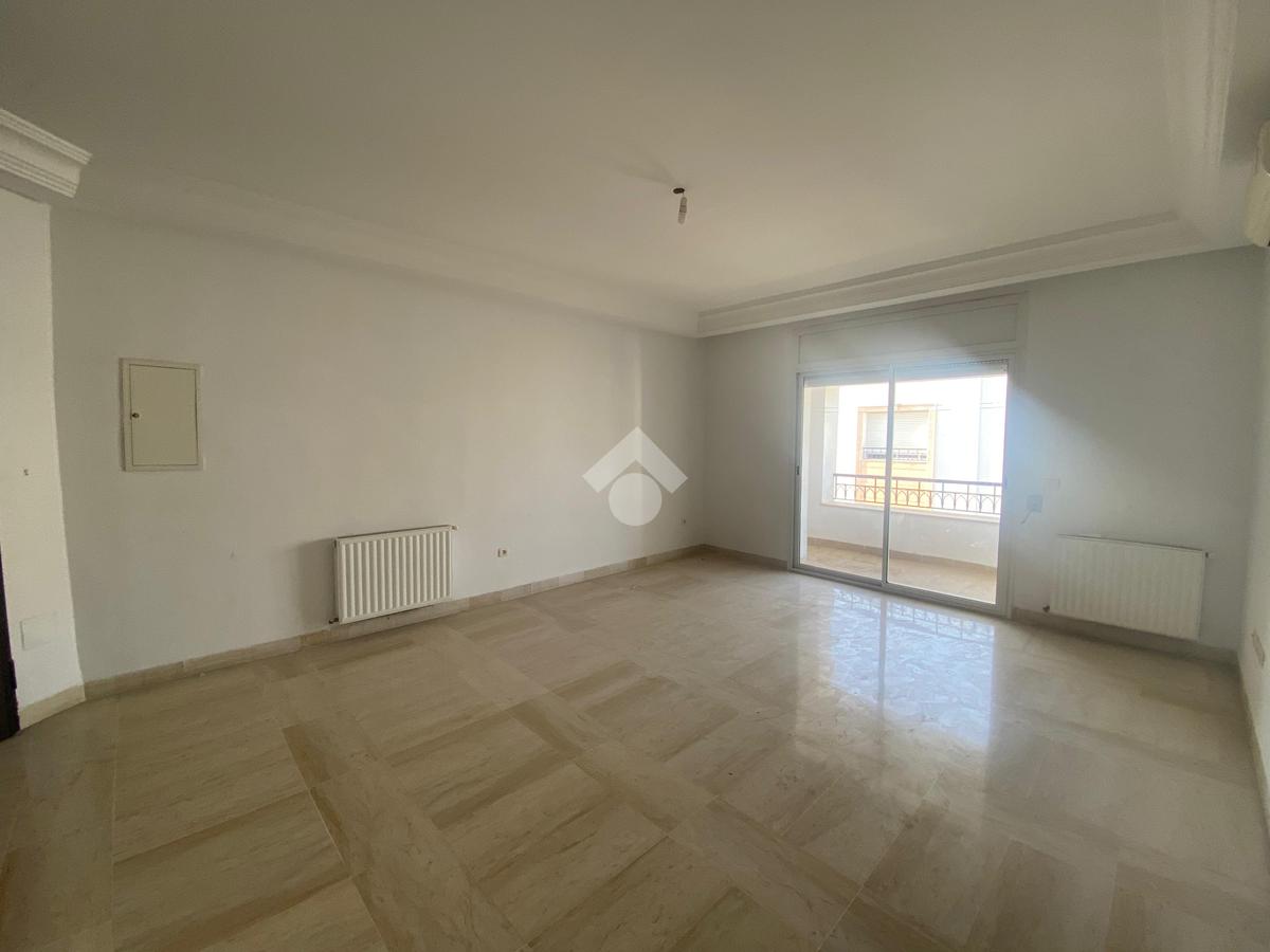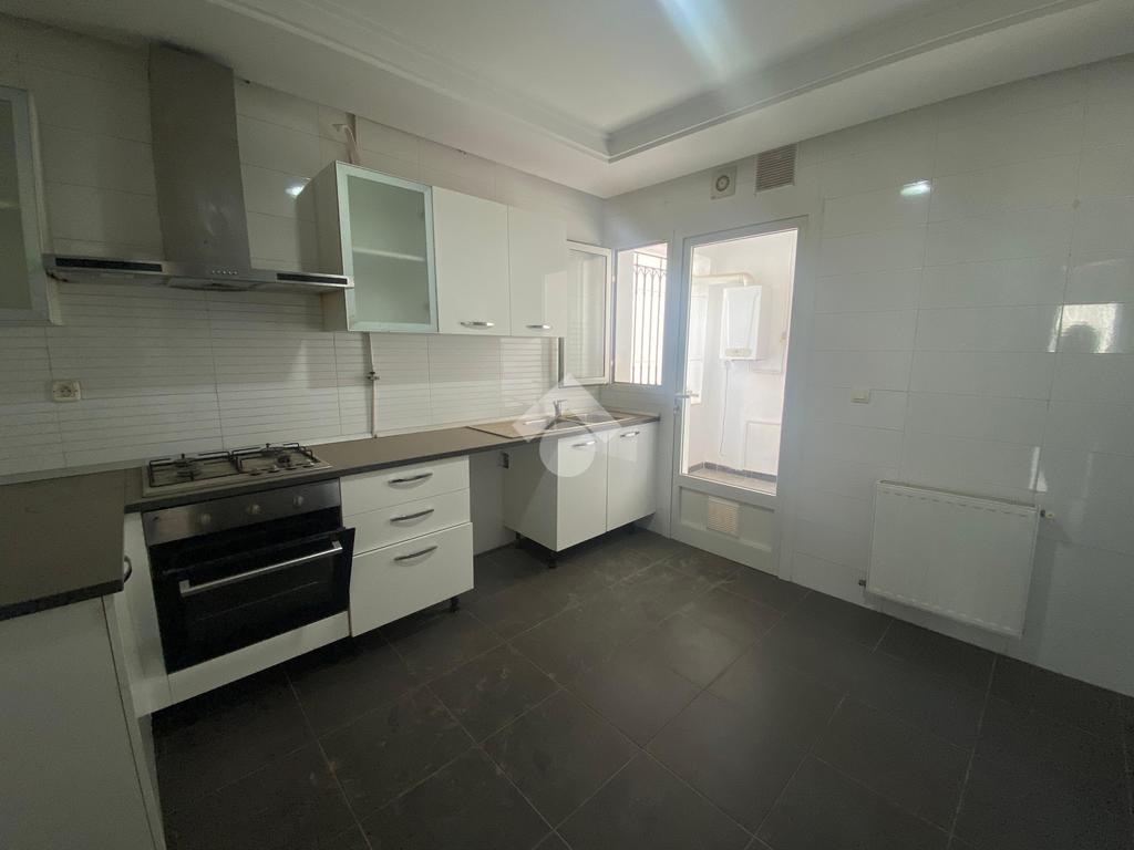 Cet appartement est situé dans une résidence sécurisée et bien gardée à la Soukra. Il se distingue par son emplacement, une zone proche de tous les commerces et les commodités. L'entrée donne une pièce de vie conviviale, elle jouit de la luminosité naturelle grâce à ses ouvertures. Pour plus de confort, cette pièce dispose d'un balcon. La cuisine est entièrement agencée et équipée par des éléments de rangement, une plaque de cuisson, une hotte aspirante, un four, et complétée par un séchoir exploitable. La partie nuit loge deux chambres à coucher chacune est équipées par son propre dressing. L'appartement est équipé par un chauffage central et une climatisation en système split.