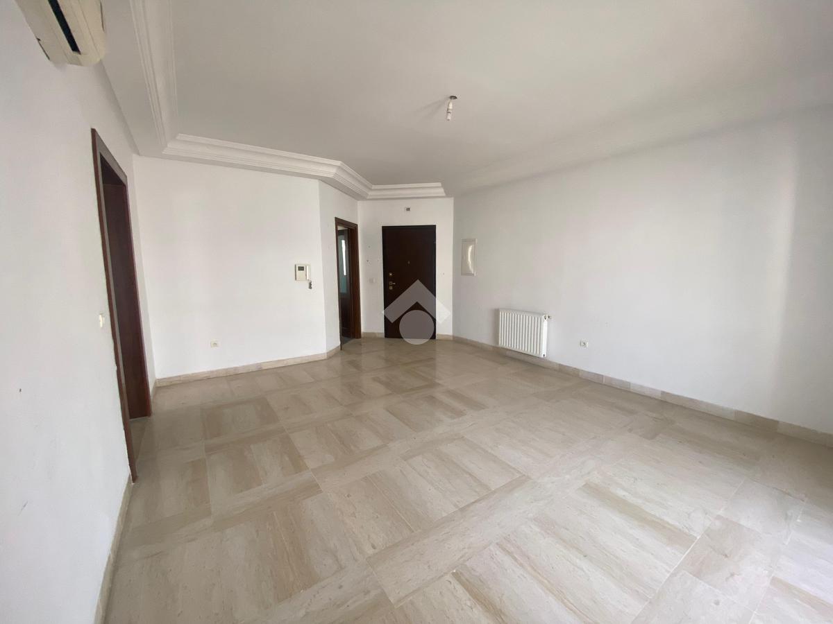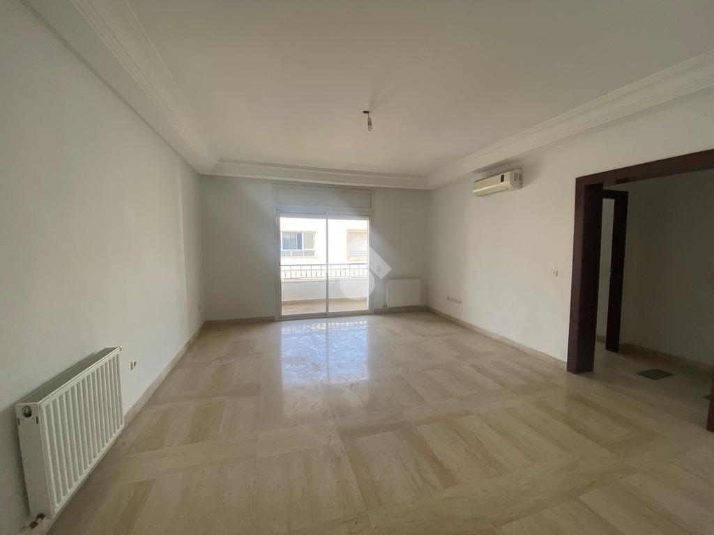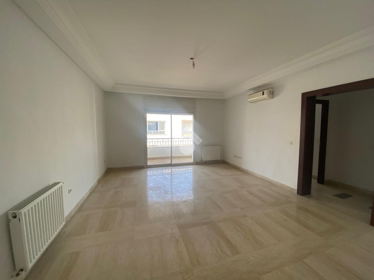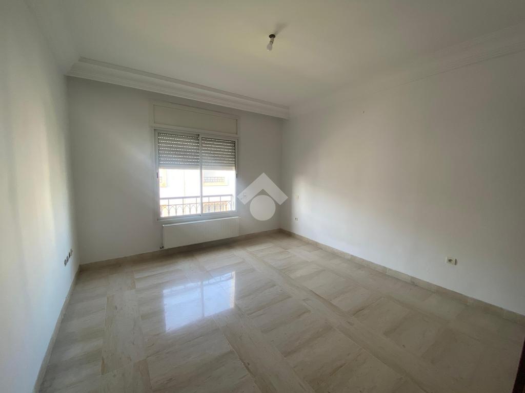 Cet appartement est situé dans une résidence sécurisée et bien gardée à la Soukra. Il se distingue par son emplacement, une zone proche de tous les commerces et les commodités. L'entrée donne une pièce de vie conviviale, elle jouit de la luminosité naturelle grâce à ses ouvertures. Pour plus de confort, cette pièce dispose d'un balcon. La cuisine est entièrement agencée et équipée par des éléments de rangement, une plaque de cuisson, une hotte aspirante, un four, et complétée par un séchoir exploitable. La partie nuit loge deux chambres à coucher chacune est équipées par son propre dressing. L'appartement est équipé par un chauffage central et une climatisation en système split.