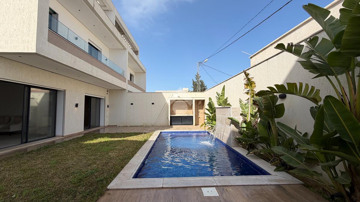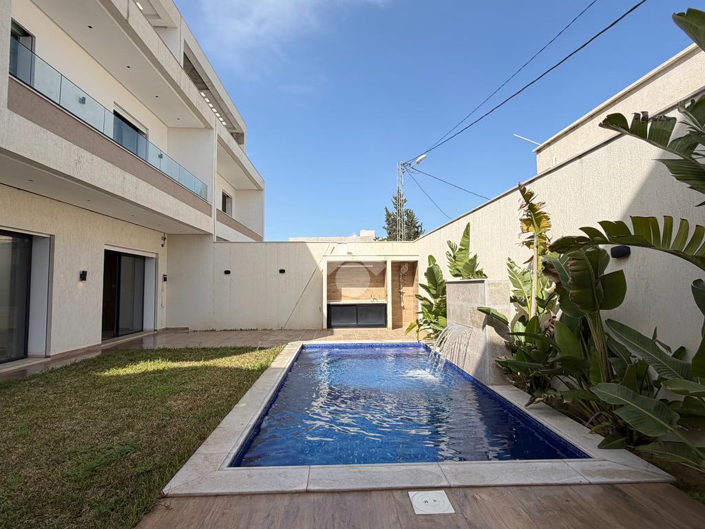 L'emplacement privilégié de ce triplex offre de nombreux avantages, notamment sa situation géographique dans une zone résidentielle renommée, avec toutes les commodités à proximité et un accès facile depuis l'avenue principale. Notre triplex présente une architecture contemporaine, avec une décoration chaleureuse et luxueuse. À l'extérieur, un jardin gazonné bien entretenu est agrémenté d'une piscine. L'entrée mène à un salon spacieux, bénéficiant d'une luminosité optimale grâce à de grandes baies vitrées offrant une vue sur le jardin. Il est orienté au sud-est. La cuisine est équipée de nombreux rangements, avec un îlot central, et complétée par un coin repas. Une salle d'eau pour les invités a été pensée. Au premier étage, on trouve trois suites, chacune avec son propre dressing et balcon. Le deuxième étage abrite la suite parentale, qui dispose de son propre dressing-room ainsi que d'une salle de bain privée avec douche. Un salon avec terrasse complète ce niveau. Ce triplex est équipé d'un chauffage central et de la climatisation à système split. Deux places de parking sont disponibles. De plus, un ascenseur est présent dans ce triplex pour faciliter les déplacements entre les étages.